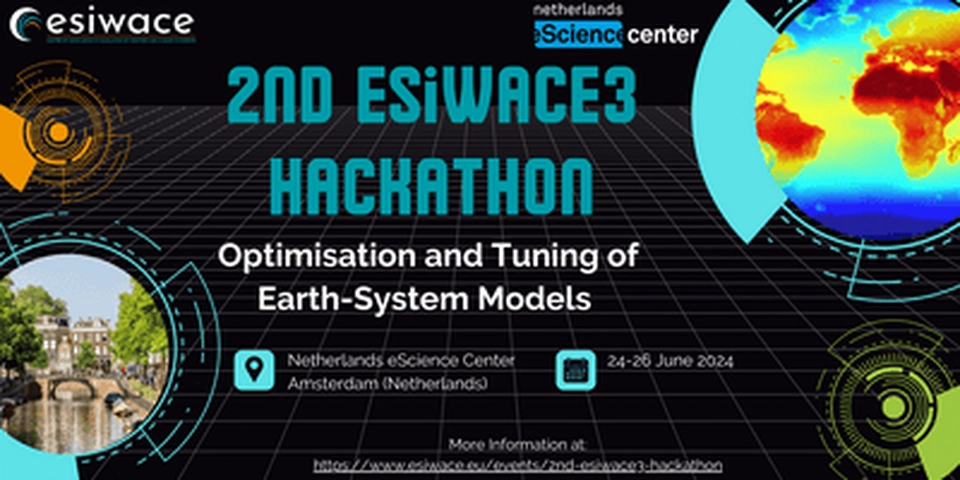 On 24-26 June 2024, Amsterdam (Netherlands) will hold the 2nd ESiWACE3 Hackathon. Entitled “Optimisation and Tuning of Earth-System Models”, the event targets weather and climate modellers at all career stages and aims to assist climate scientists with optimising earth-system models (ESMs). It will be an on-site event at the Netherlands eScience Center (in Amsterdam), and remote participation is impossible.