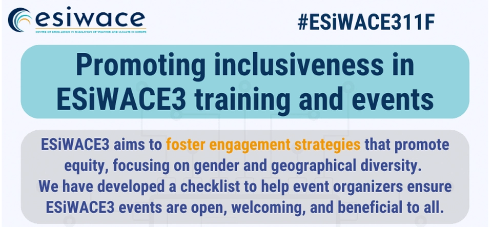 The ESiWACE3 project has taken a step toward building a more inclusive and diverse community within Earth system modelling and high-performance computing (HPC). In line with its commitment to gender and geographical diversity, ESiWACE3 has developed a guideline aimed at promoting equity and creating a welcoming environment for all participants in its events and training.